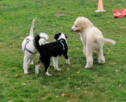 Neben problembezogenen Einzeltraining arbeite ich mit dem klassischen Gruppentraining für Anfänger oder Fortgeschrittene mit einer Gruppengröße von maximal 5-6 Teilnehmern. Ich biete aber auch z.B. Duo-Trainings bzw. Kleingruppentraining an, was sich z.B. gerade bei etwas aufgeregten Menschen oder Hunden sehr bewährt hat.